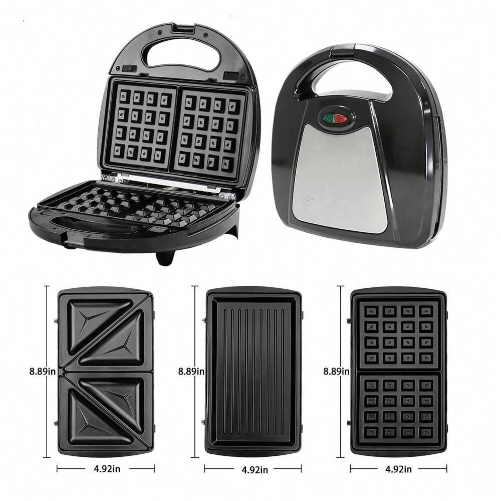 3 plaques interchangeables : Sandwich – Gaufre – Grill. Chauffe rapide : prêt en quelques minutes. Antiadhésif : rien n’accroche, nettoyage facile. Compact & élégant : idéal pour petites cuisines. Sécurité intégrée : voyants lumineux + poignée isolante. Économie : plus besoin d’acheter plusieurs appareils